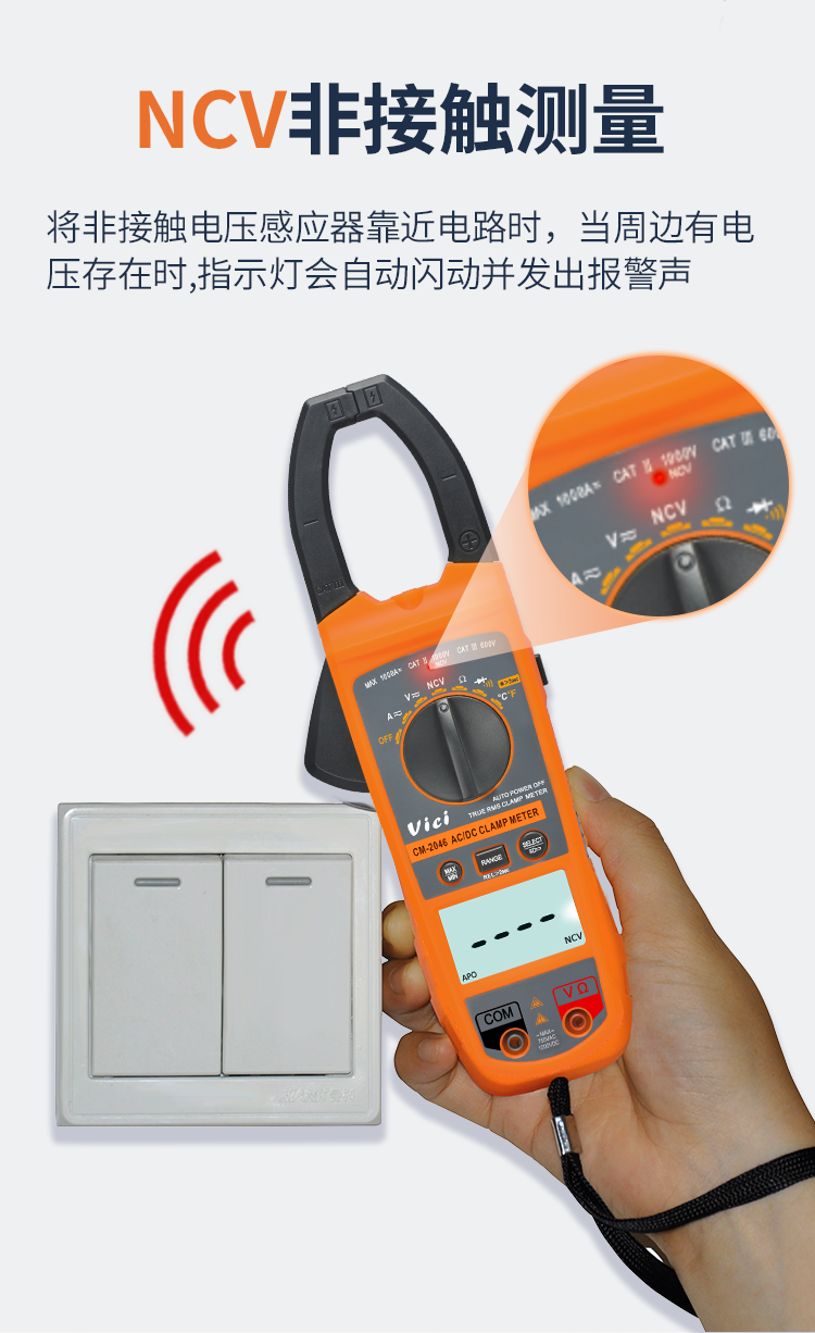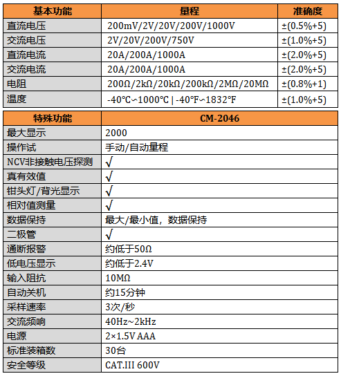 CM-2070C 2000碼顯示,鉗口張開52mm,真有效值測量,NCV功...