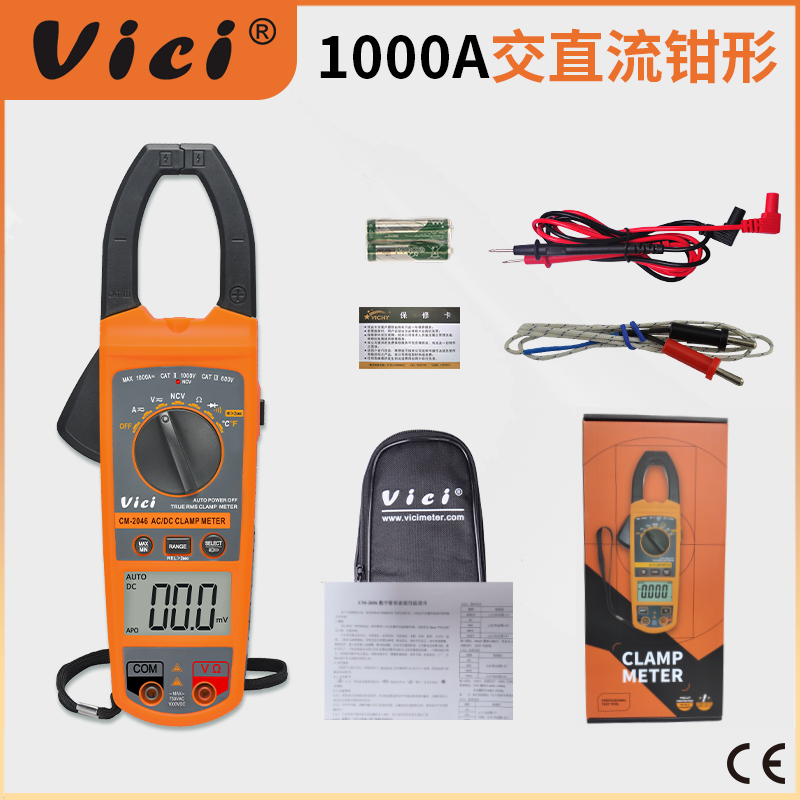 CM-2046 鉗口張開52mm 交直流1000A真有效值測量, 溫度測量,NCV功能,背光顯示,鉗頭照明。