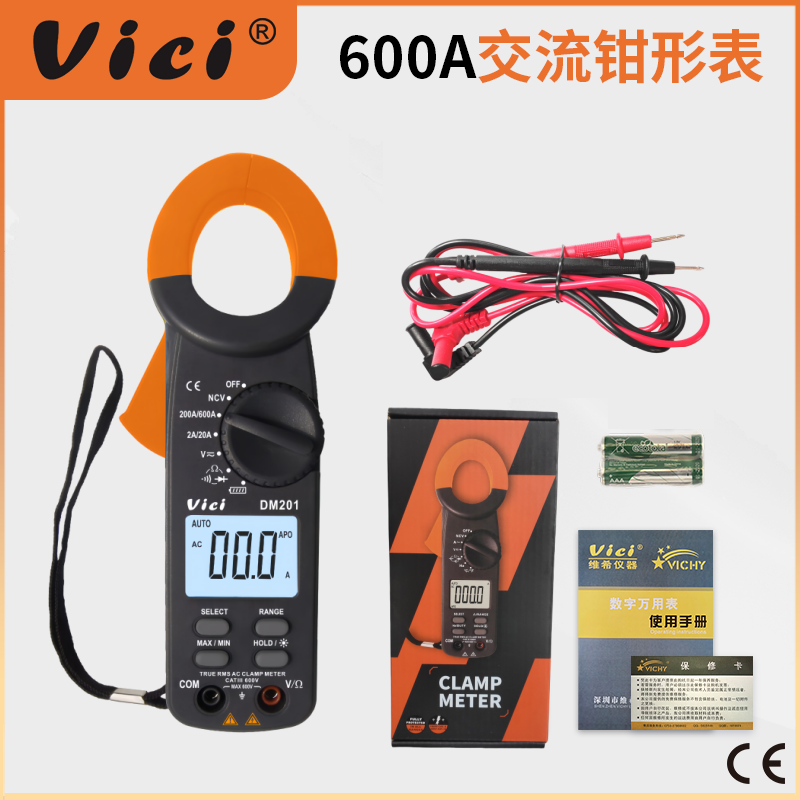 DM201 鉗口張開35mm,真有效值測量,NCV功能,電池測量,背光顯示。