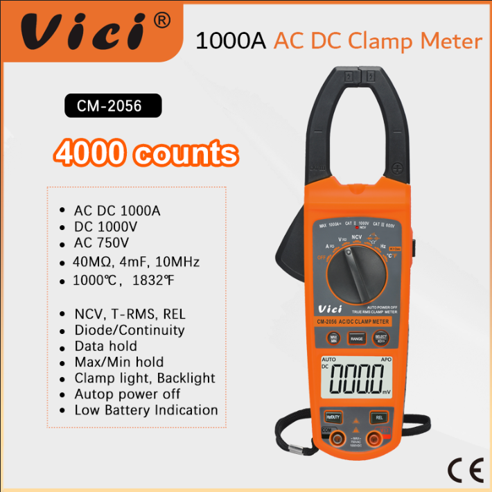 CM-2046 Clamp open 52mm, 1000A AC DC, True RMS, NCV, Temperature tests, Backlight, Clamp lighting function.