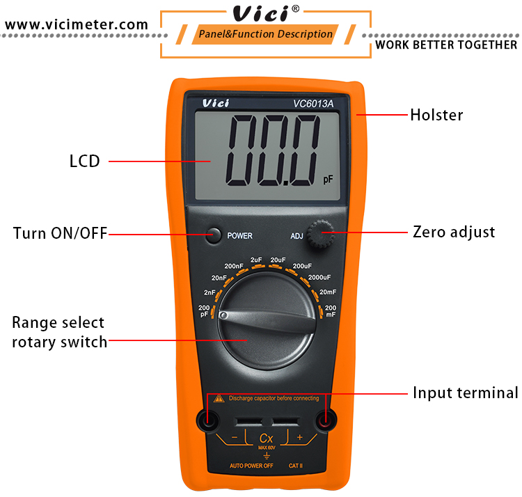 VC6013A 200mF Large range, High accruacy digital capacitance meter, Capacitor self-discharge (avoid burning the meter).