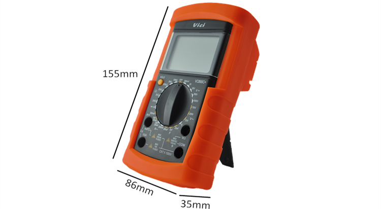 VC890C+ Manual ranging, Max 200uF capacitance, Anti-high pressure ignition design, high-strength anti-drop protection shock-proof holster.