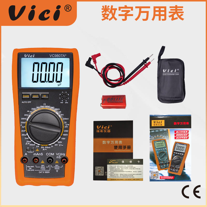 VC9807A+ 四位半高精度測量,電容最大200uF,頻率,電導測量,防高壓打火設計。