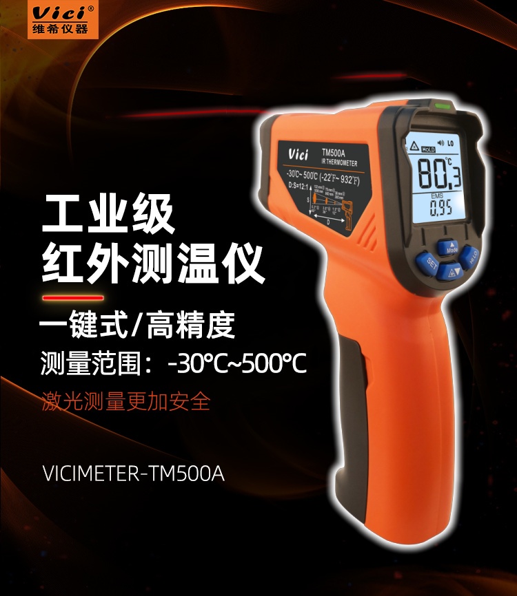 TM500A 500℃ 12:1紅外測溫儀,發射率0.1~1.0可調,高低溫報警功能,最大/最小/平均/差值。