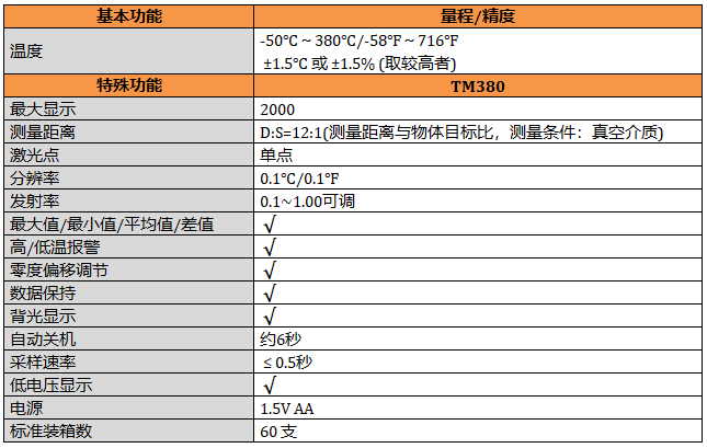 TM380 380℃紅外測(cè)溫儀,發(fā)射率0.1~1.0可調(diào),閥值可設(shè)置,聲音報(bào)警功能,最大/最小/平均/差值。