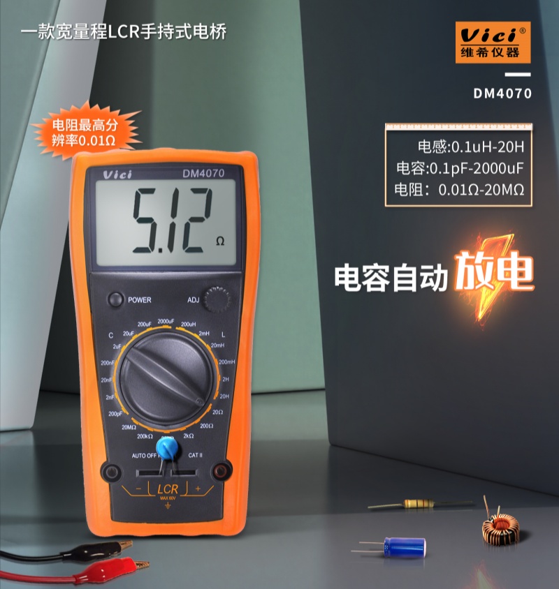 DM4070 200uH 20Ω超低量程,高精度數字LCR表,電容自動放電不燒表。