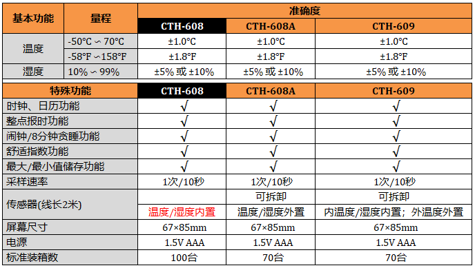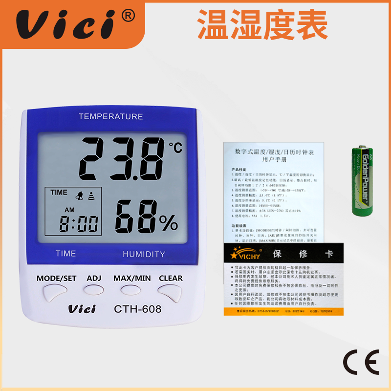 CTH-608 數(shù)字溫濕度表,時鐘、日期功能,最大值、最小值溫濕度儲存功能。