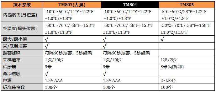 TM804 冰箱溫度計(jì),高低報(bào)警設(shè)置,最大值、最小值測(cè)量,攝氏和華氏溫度,吸附磁鐵。