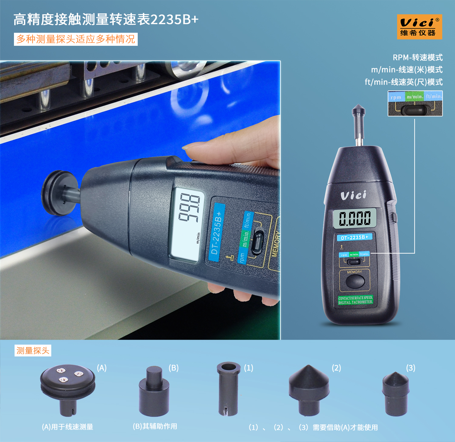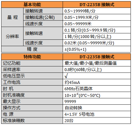 DT-2235B+ 接觸式轉速線速表,自動記憶最大值,最小值,最后測量值。