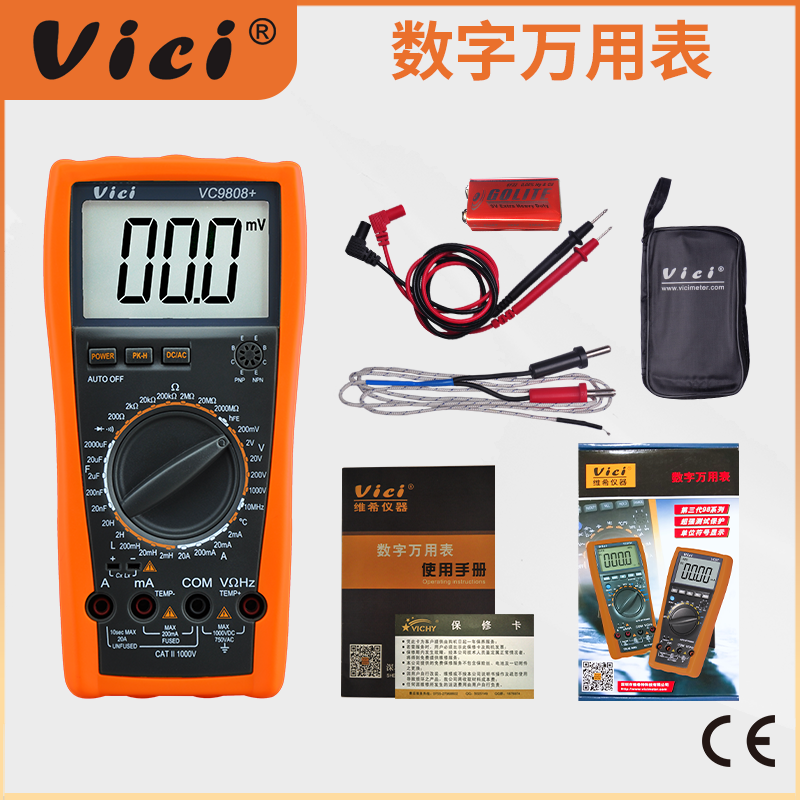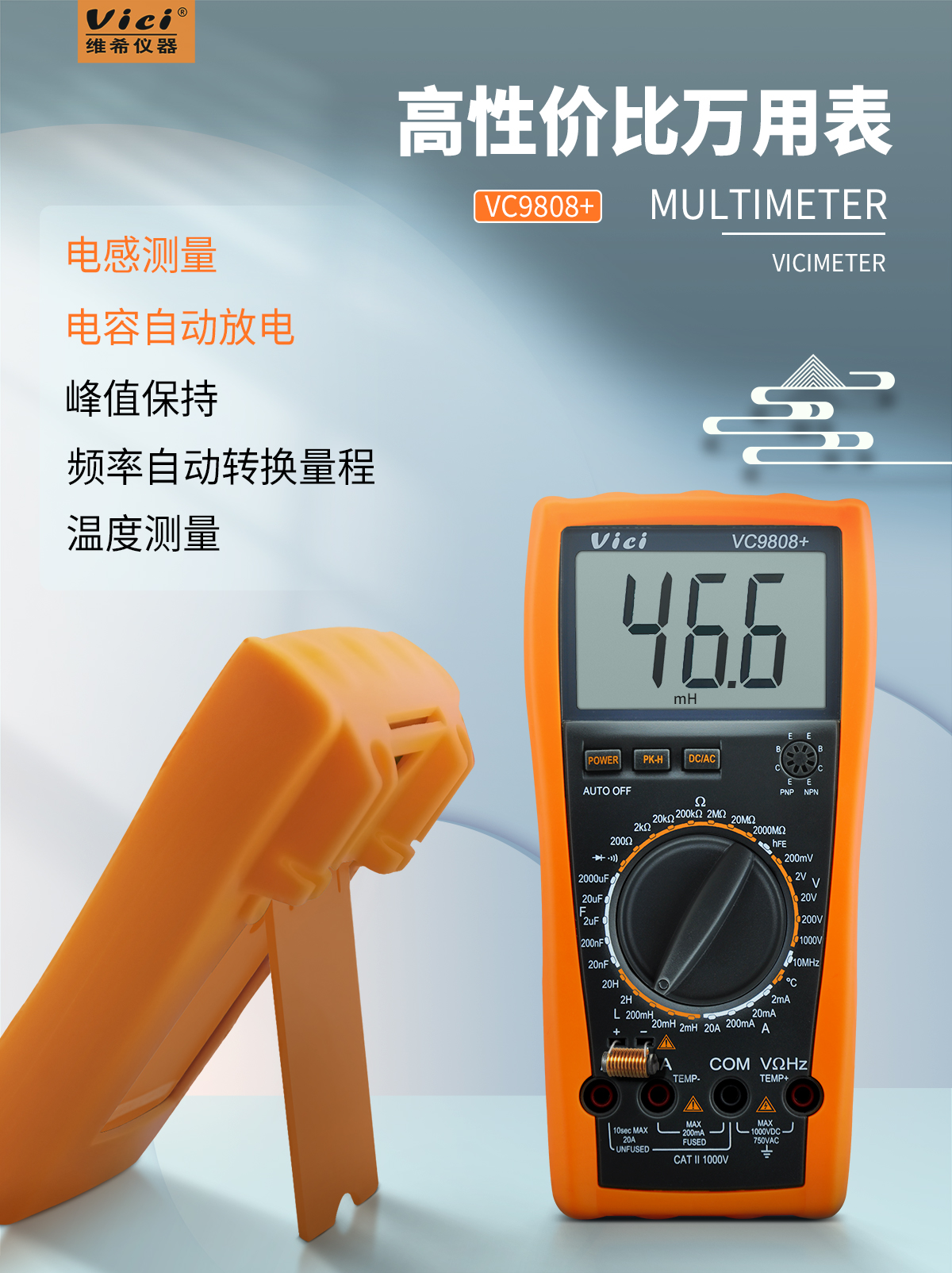 VC9808+ 電容最大2000uF,電阻最大2000MΩ量程測量,電感,頻率,溫度測量,防高壓打火設計。
