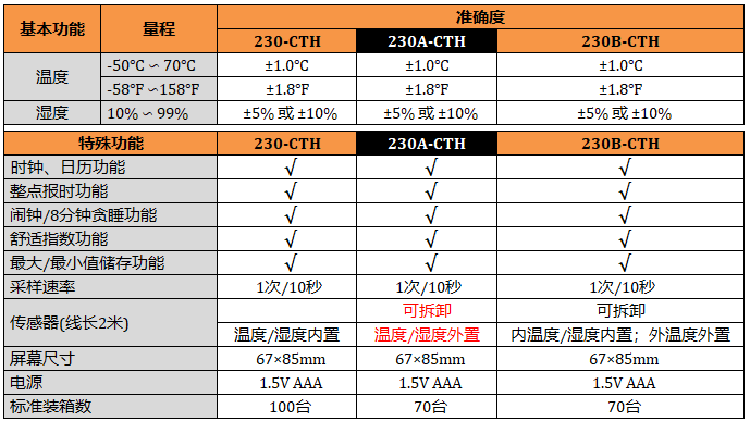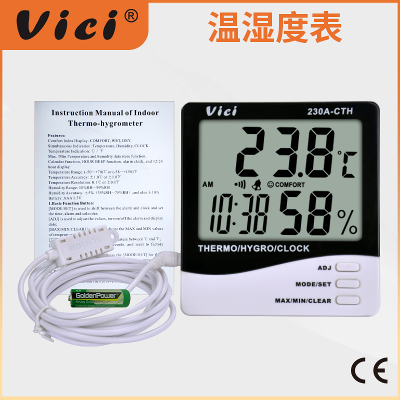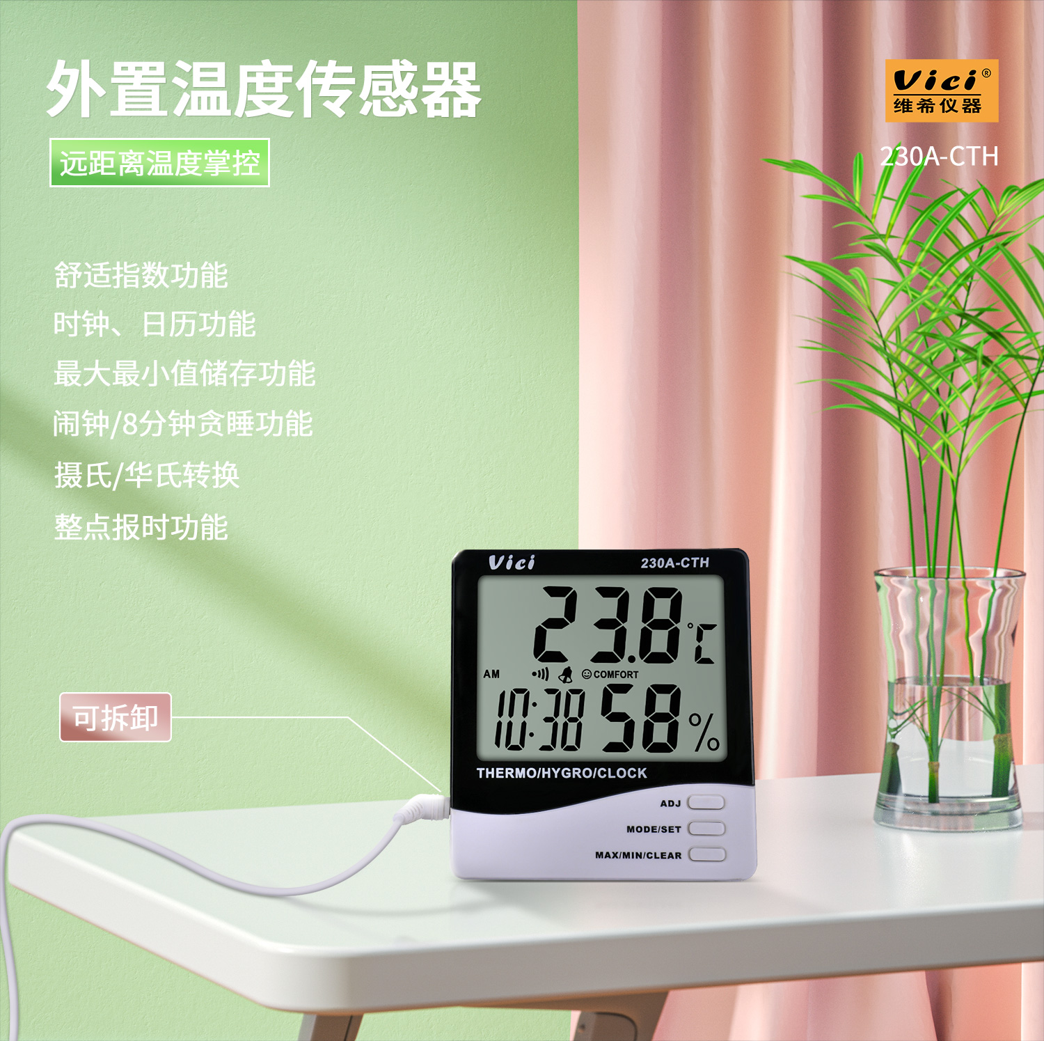 230A-CTH 數(shù)字溫濕度表,遠(yuǎn)距離測量,時(shí)鐘、日期功能,最大值、最小值溫濕度儲(chǔ)存功能。